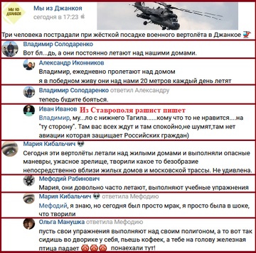 Жителі міста припускають, що на кадрах той самий Мі-35, який здійснив жорстку посадку. В результаті аварії постраждали три людини, пізніше один пілот помер в лікарні. Відео польотів над самими дахами були зроблені за пару годин до аварії.