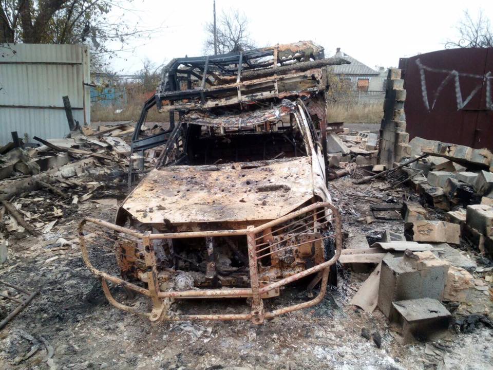Лідер політичної партії "Братство" Дмитро Корчинський опублікував фотографії наслідків вчорашніх обстрілу позицій сил АТО біля Донецька бойовиками "ДНР".