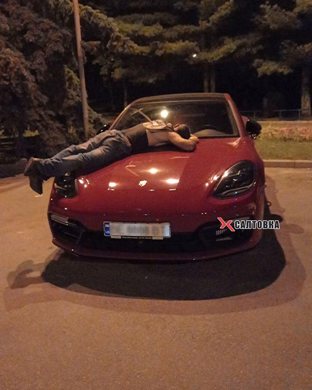 "А ось так вчора власник Porsche Panamera намагався розбудити чувака, що заснув на капоті", - прокоментували кадри в мережі.