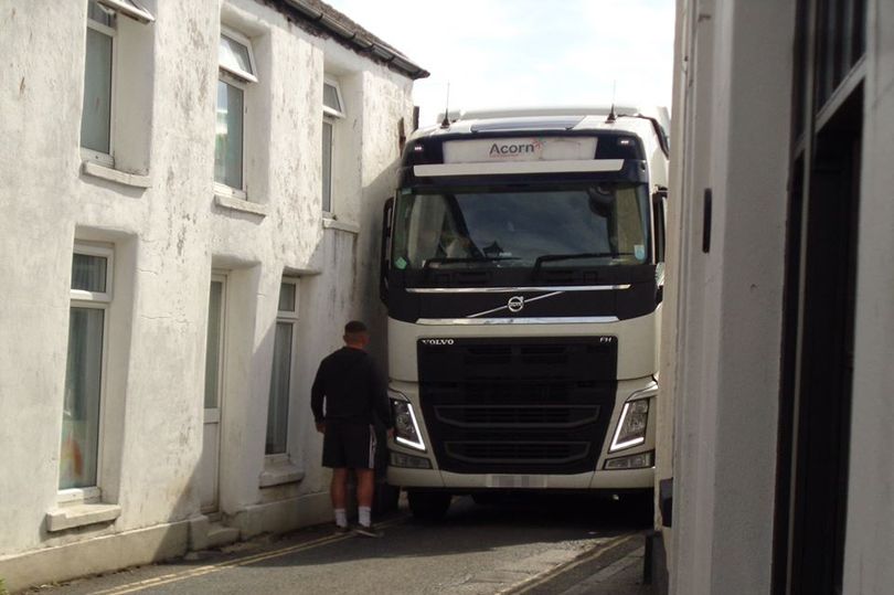 У селі Мулліон (графство Корнуолл, Велика Британія) водій вантажівки зухвало порушив ПДР і потрапив у пастку - його авто застрягло через те, що вулиця була занадто вузькою.