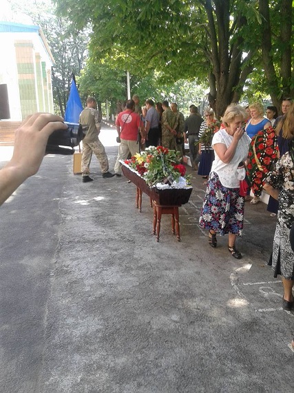 "Провели в останню путь нашого хлопчика, який пішов добровольцем у 54 ОРБ і загинув під Луганськом при виконанні бойового завдання", - повідомила вона.