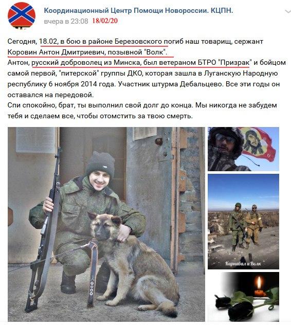 На сході України ліквідували чергового прихильника незаконних збройних формувань. На цей раз в результаті бойових дій помер Антон Коровін на прізвисько "Вовк", який приїхав на Донбас з Мінська.