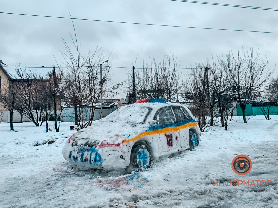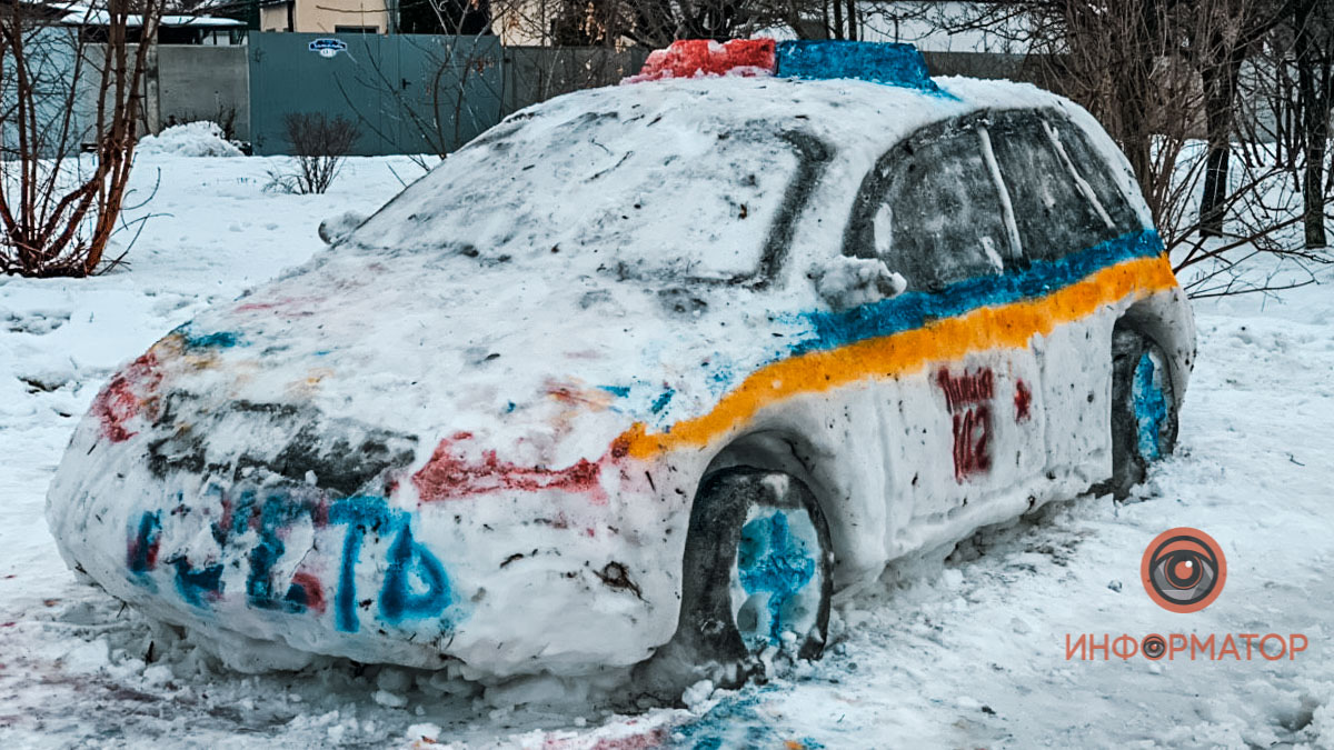 У мережі показали барвисте фото незвичайного сніговика - невідомі зліпили за ніч поліцейський автомобіль, який легко сплутати зі справжнім.