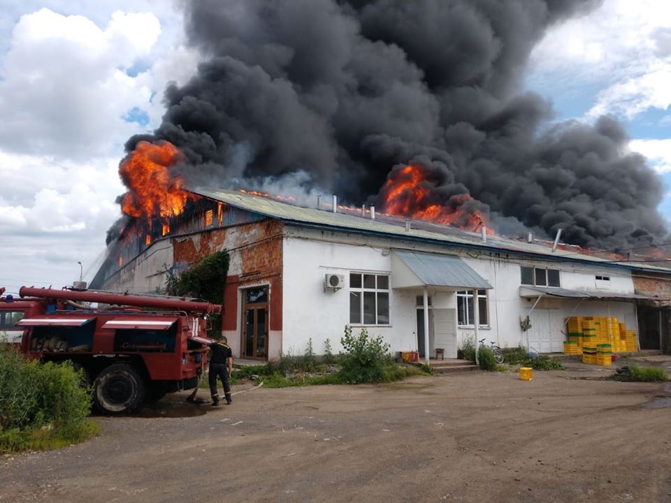 У Хусті Закарпатської області у понеділок, 13 липня, спалахнула масштабна пожежа - на території одного з підприємств загорілася покрівля.