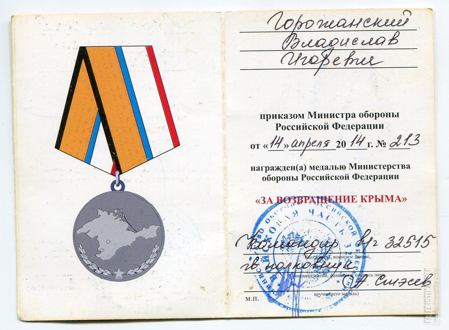 Російський найманець Владислав Горожанський, який брав участь в окупації Криму і Донбасу, виставив свої медалі на продаж в інтернеті.