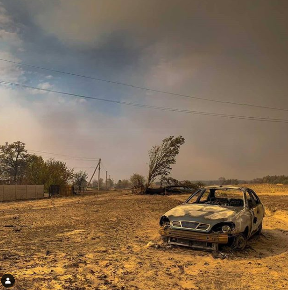 "Це не наслідки ядерного удару або бойових дій. Це наслідки пожежі в Воронове! Це авто застрягло в піску і вже звідти не вибралося, благо що власник встиг врятуватися", - прокоментували фото в мережі.