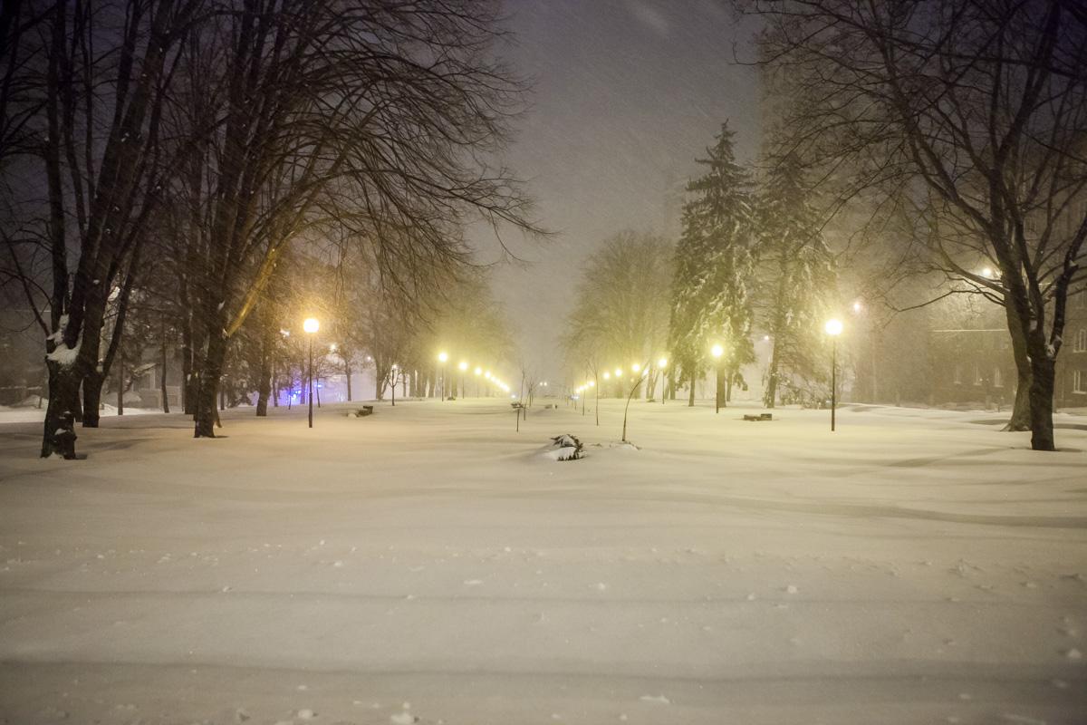Сильний снігопад не припинявся всю ніч. Вранці 19 березня у місті стався справжній транспортний колапс. Комунальні служби у цілодобовому режимі розчищали місто від снігу.