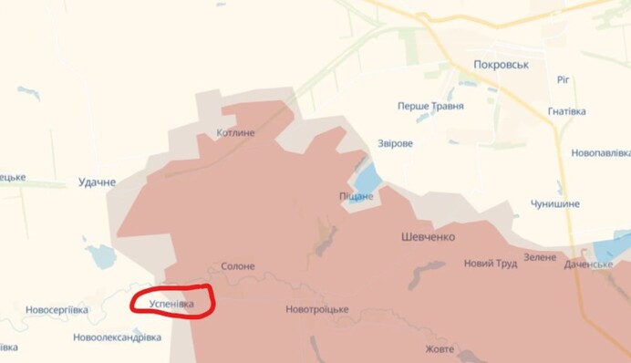 У районі села Успенівка Покровського району Донецької області росіяни вночі штурмували українські позиції та продовжують це робити зараз.
