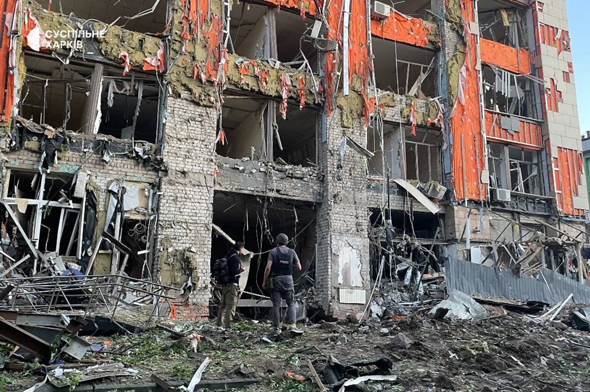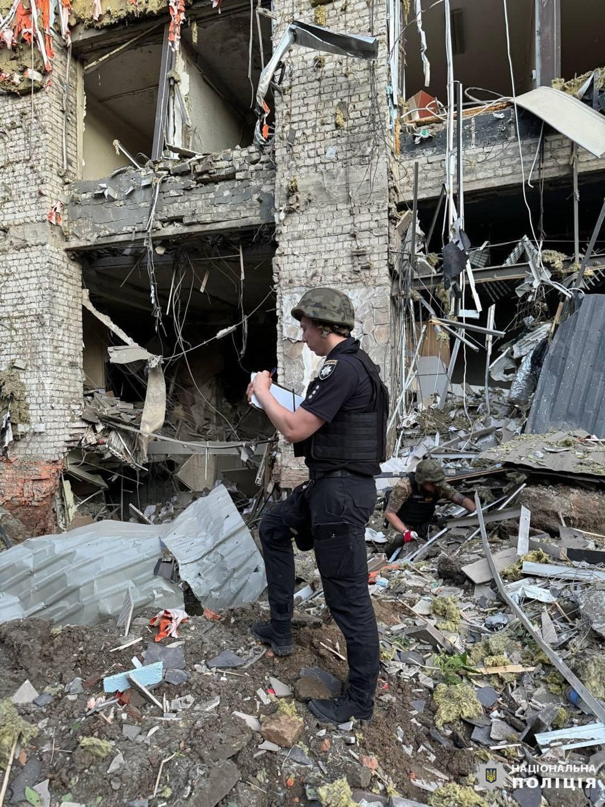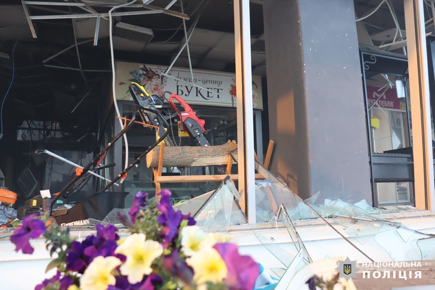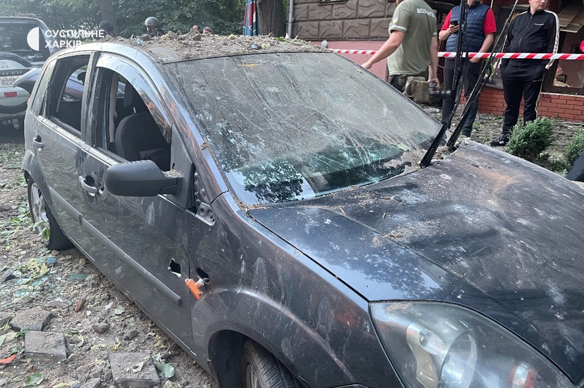 Серед травмованих також патрульний поліцейський, про що повідомила пресслужба поліції Харківщини у Telegram. Водночас пошкоджені житлові будинки, автомобілі, магазини та інші інфраструктурні об"єкти.