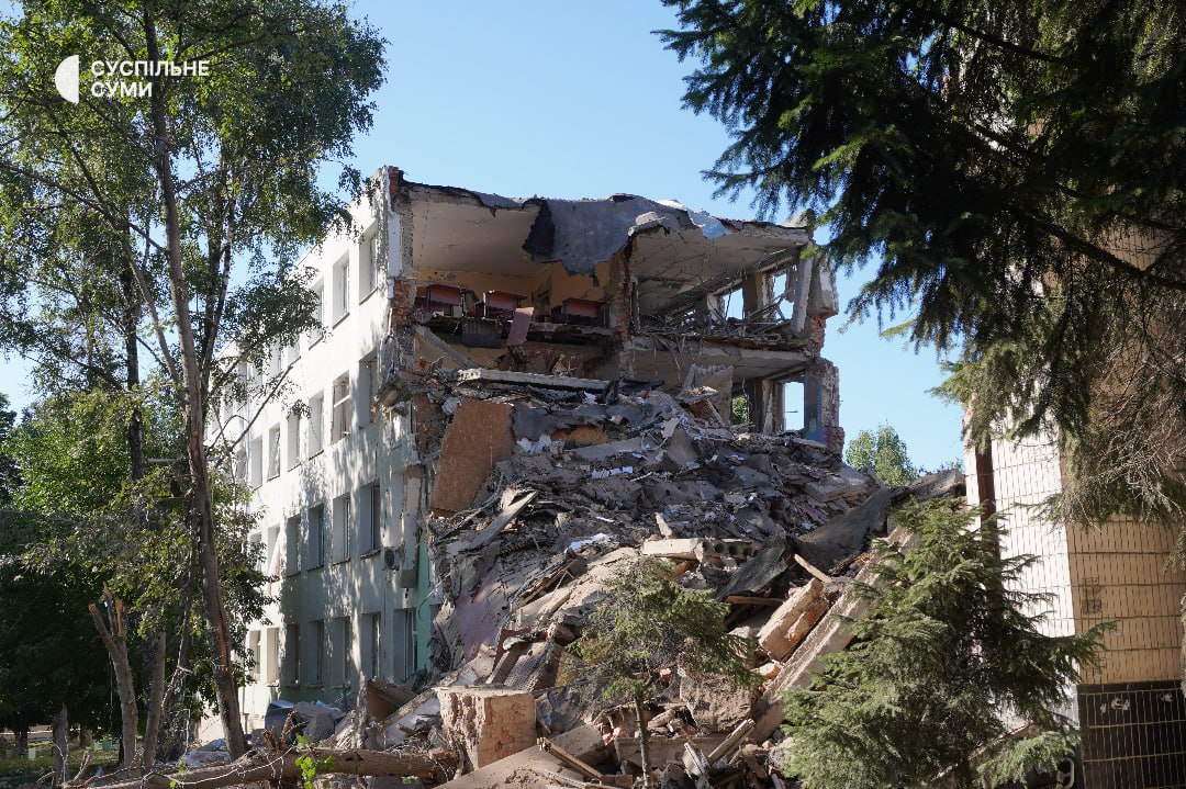 Внаслідок ракетного удару по Сумах у суботу увечері 29 липня сталася пожежа, значних руйнувань зазнала чотириповерхова будівля, щонайменше одна людина загинула, є поранені.