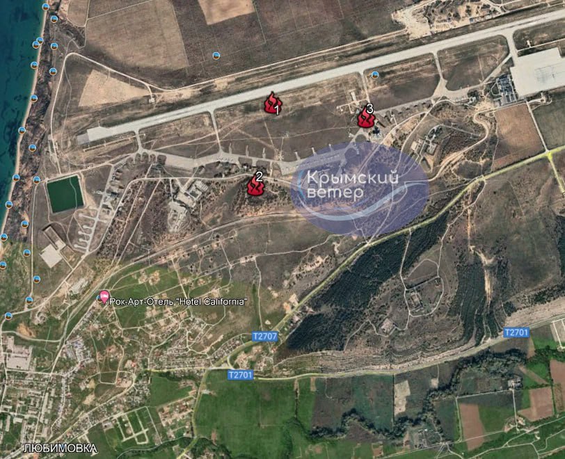 Згадується, як так звана росвлада Севастополя повідомила про нібито "падіння уламків збитої ракети в приватному секторі на вулиці Федорівській". Водночас моніторингова група "Кримського вітру" на супутникових знімках фіксувала три осередки пожеж на аеродромі Бельбек у районі злітної смуги та місць стоянок літаків.