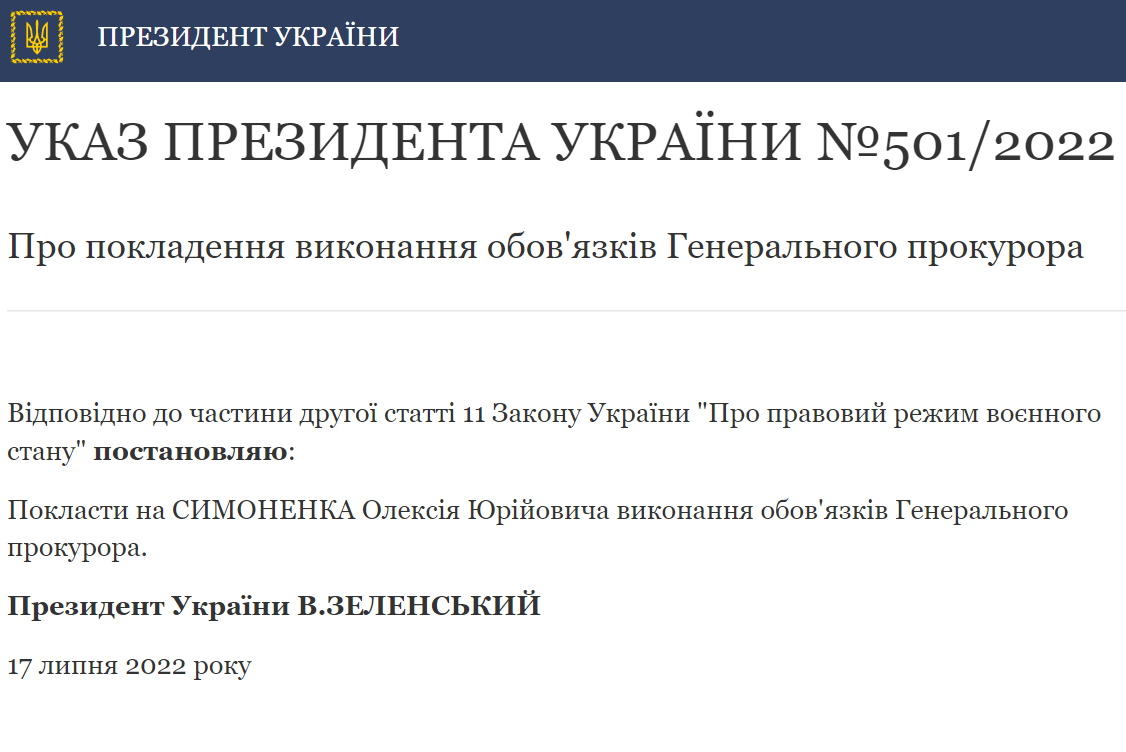 23:02 Президент України Володимир Зеленський своїми указами усунув з посад генерального прокурора Ірину Венедиктову та голову СБУ Івана Баканова. Виконувачем обов'язків голови Офісу генерального прокурора замість Венедиктової призначено її заступника Олексія Симоненка.