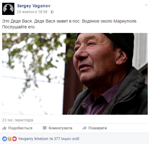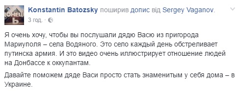 Користувачів соціальної мережі вразило відео з жителем селища Водяне, розташованого недалеко від Маріуполя, на якому він жорстко висловлюється на адресу росіян, які воюють на Донбасі проти сил АТО.