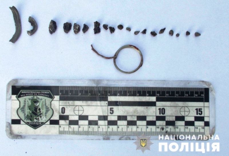 На місці події були виявлені залишки гранати Ф-1 - кільце з чекою і магнітний збір осколків. Ці предмети направлено на експертизу.