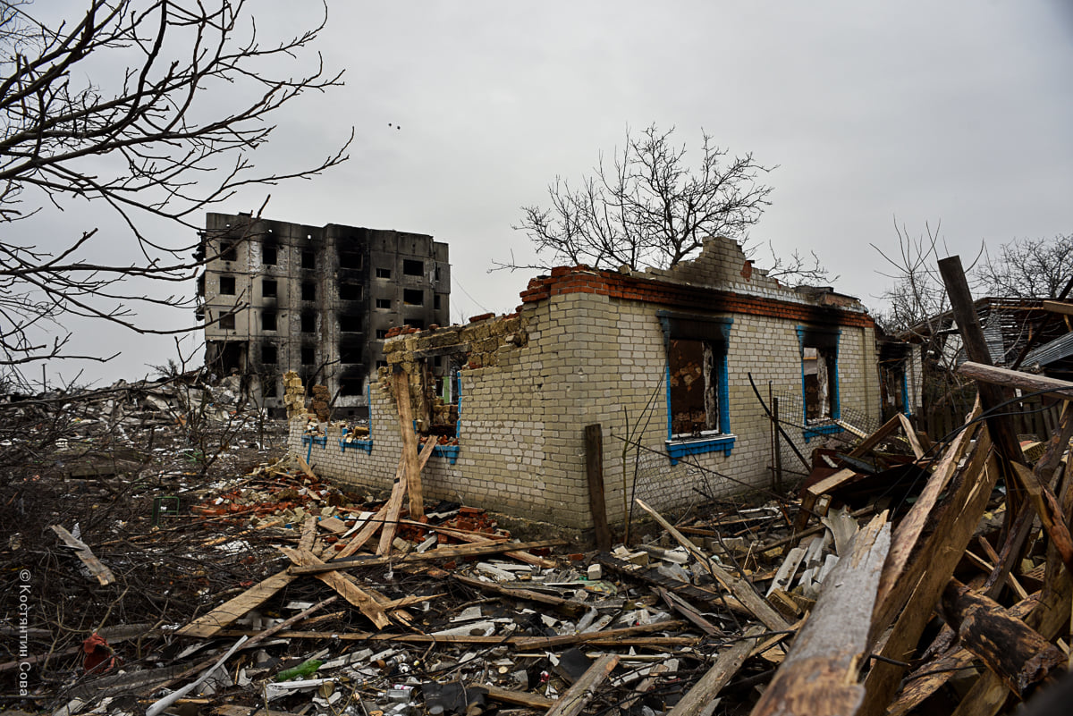 Знімки зруйнованого окупантами населеного пункту показав у соцмережі Facebook журналіст Костянтин Сова.