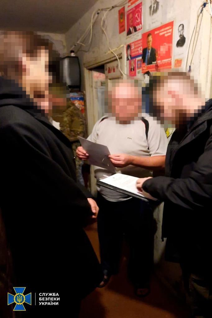 Правоохоронці обшукали місце проживання колаборанта, де виявили та конфіскували мобільні телефони, з яких він контактував з російською спецслужбою, а також заборонену в Україні комуністичну символіку і пропагандистські матеріали на підтримку комуністичної партії РФ.