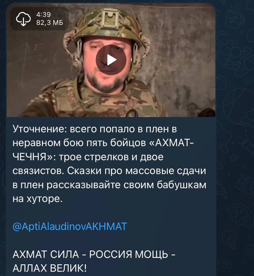 Командир кадирівського підрозділу "Ахмат" Апті Алаудінов визнав, що ЗСУ взяли в полон його бійців.
