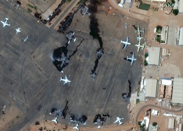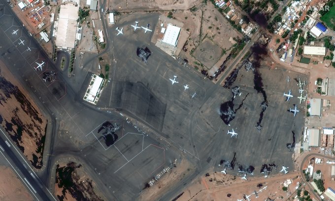 Опубліковано супутникові знімки аеропорту Хартума у Судані, де внаслідок сутичок було пошкоджено літаки.