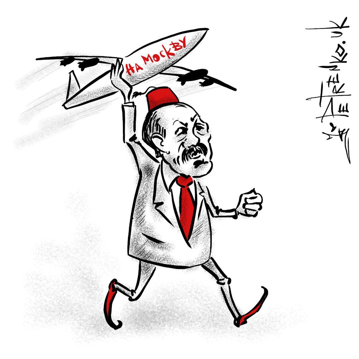 На фото зображений Ердоган, який запускає літак з написом "на Москву".