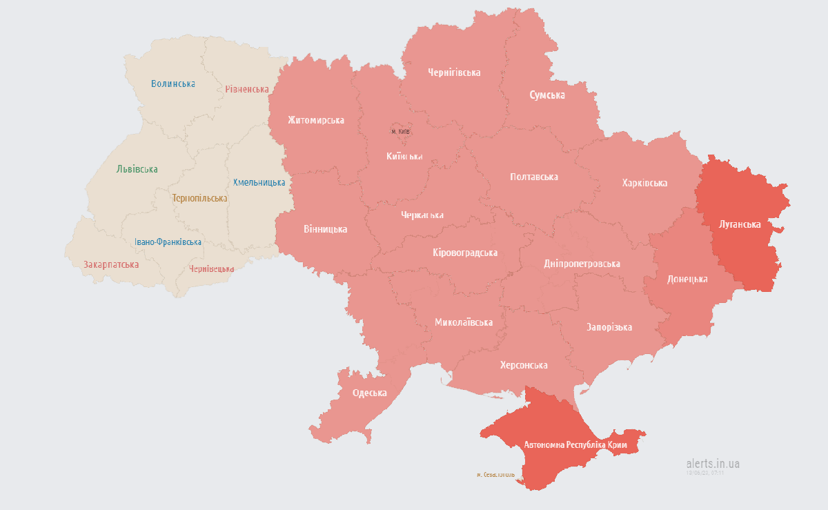 Попередньо, сигнал тривоги було оголошено через можливі запуски ракет "Калібр" з акваторії Чорного моря. Тому повітряну тривогу оголошено в східних, південних і центральних областях України.