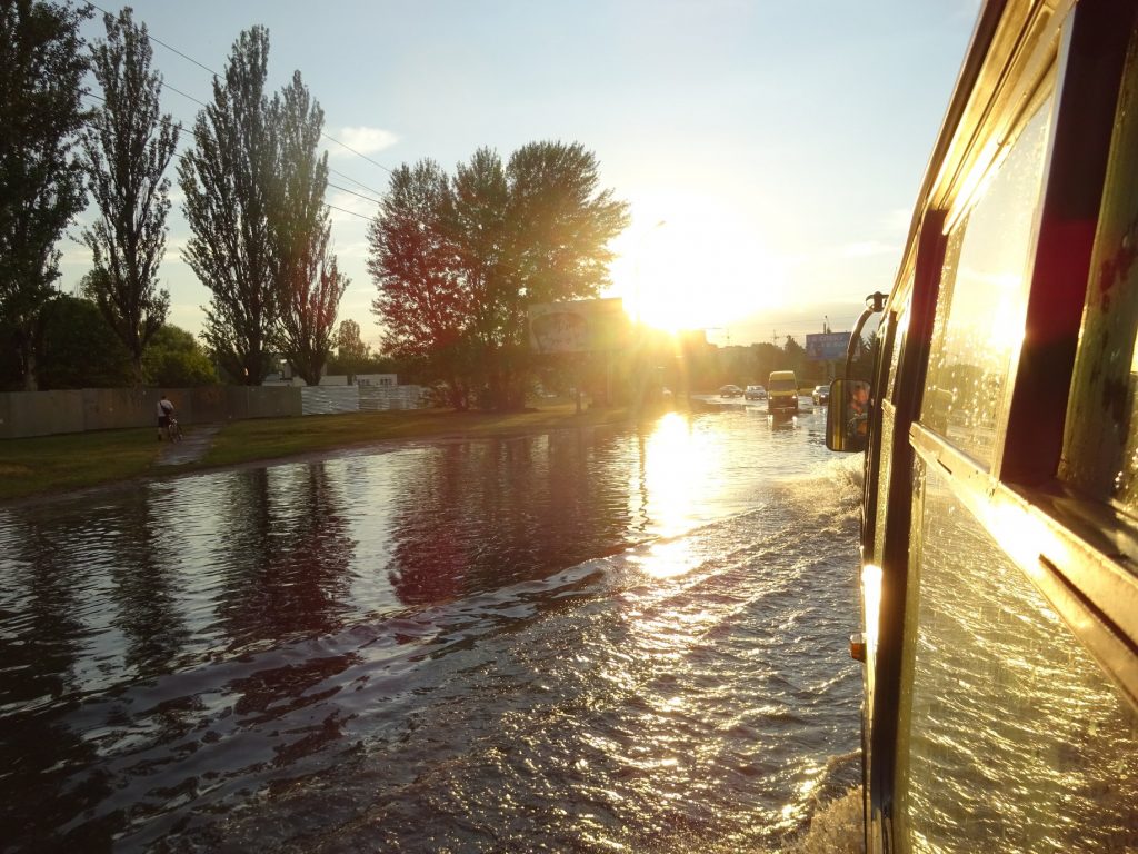 Вулиці міста затопило, а деякі райони стали непроїзними.