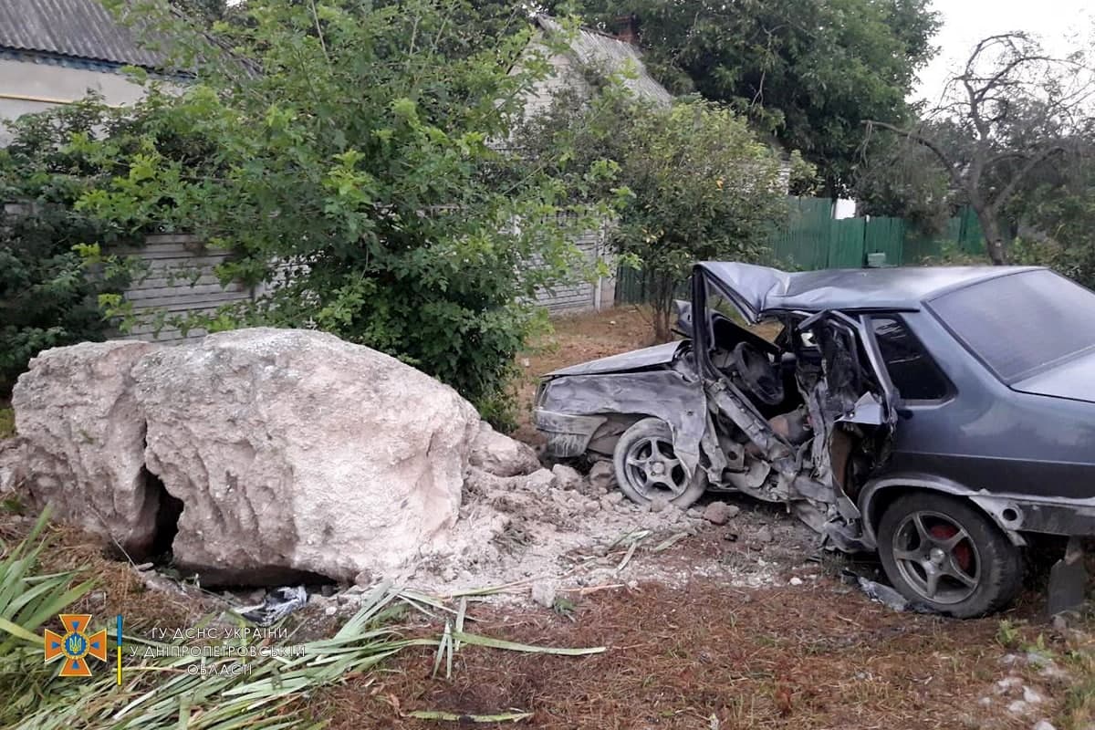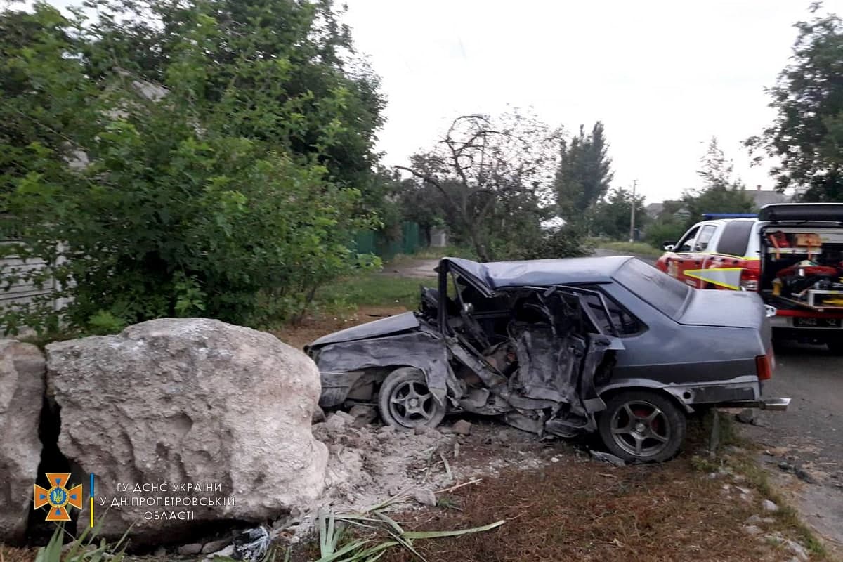 У місті Новомосковськ Дніпропетровської області в ніч на неділю, 1 серпня, водій автомобіля ВАЗ-21099 вилетів з дороги та на швидкості врізався в бетонний камінь.