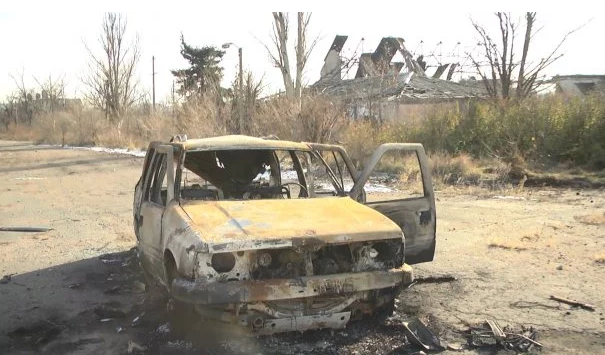 Проросійські бойовики керованою ракетою спалили машину ЗСУ в Пісках на Донбасі.