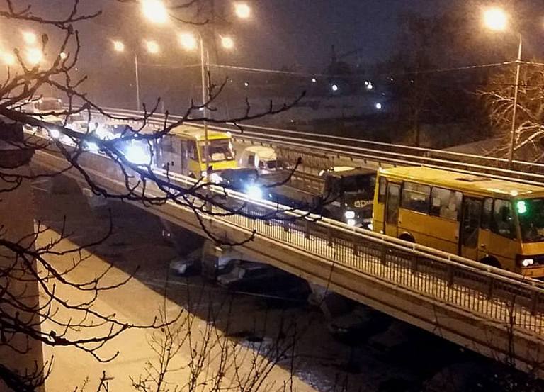 Через аварію на шляхопроводі утворився великий затор.