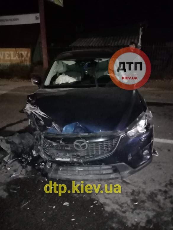 Під Києвом жінка за кермом автомобіля Mazda врізалася в кілька автомобілів, включаючи маршрутку з людьми, після чого просто заснула у салоні свого транспортного засобу.
