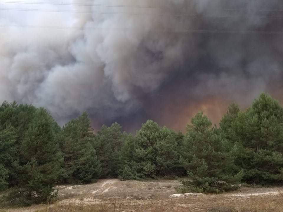 "Ліс почав горіти близько 14.00. В місце загоряння відразу виїхав черговий пожежний розрахунок військової частини А2399. На даний час, до гасіння залучені військовослужбовці військової частини А2399, ДСНС, Національної гвардії та лісники. Всього до ліквідування розповсюдження вогню на території полігону залучено 120 військовослужбовців і три одиниці пожежної техніки", - йдеться в заяві.