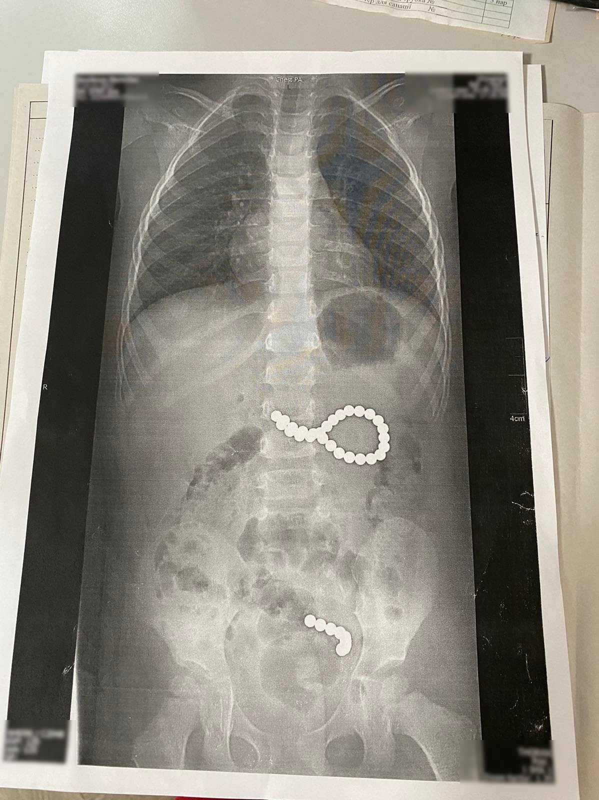 "Дев"ять кульок, які дитина проковтнула у п"ятницю, утворили ланцюжок, бо було сильне магнітне поле. І вони пройшли зі шлунка в тонкий кишківник. А ті 27 магнітних кульок, які дитина проковтнула у суботу, утворили неправильне коло і їх терміново треба було діставати. Кульки були діаметром 4 мм, найвірогідніше, з якогось конструктора", – розповіла лікар Горбач.
