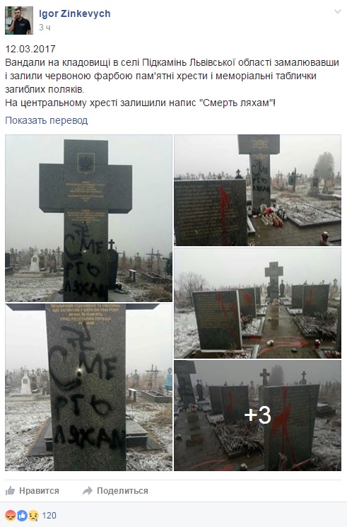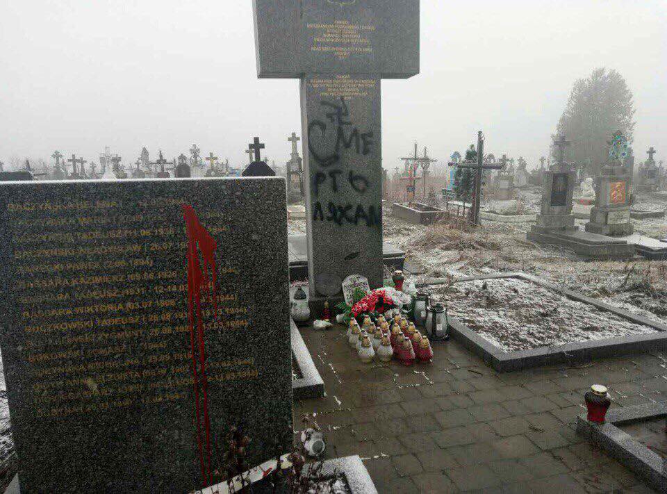 На центральному хресті залишили напис: "Смерть ляхам!" і зображення свастики.