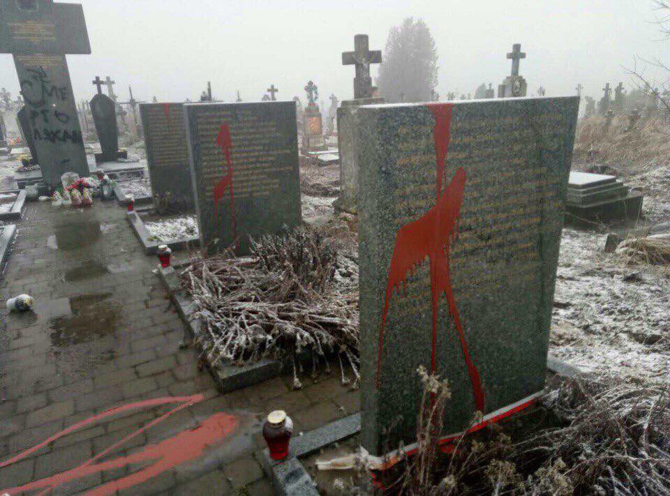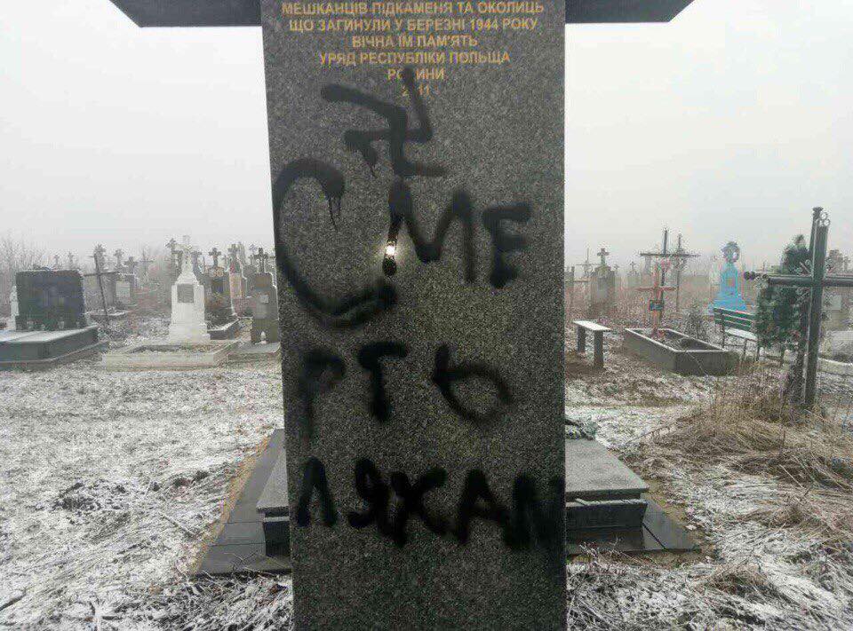 На кладовищі у селі Підкамінь Львівської області вандали замалювали і залили червоною фарбою пам'ятні хрести і меморіальні таблички на могилах поляків.