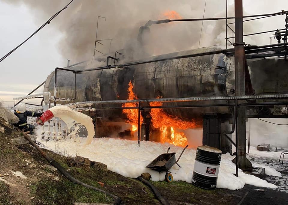 Площа пожежі становила близько 500 кв.м. В ДСНС повідомили, що о 14:45 пожежу ємності з бітумом на території нафтобази було ліквідовано. В гасінні пожежі було задіяно 14 одиниць техніки та 67 чоловік. Жертв і постраждалих немає. Причина пожежі поки що невідома.