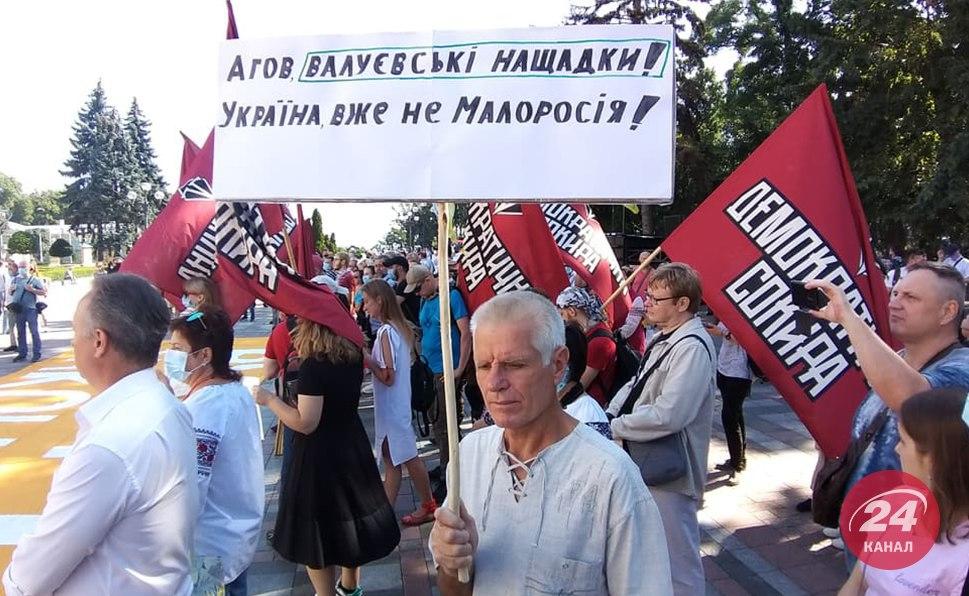 Як повідомляв "Апостроф", у четвер, 16 липня, під стінами Верховної Ради пройшла акція протесту, на якій зібралися противники законопроекту про мову, який передбачає русифікацію українських шкіл.