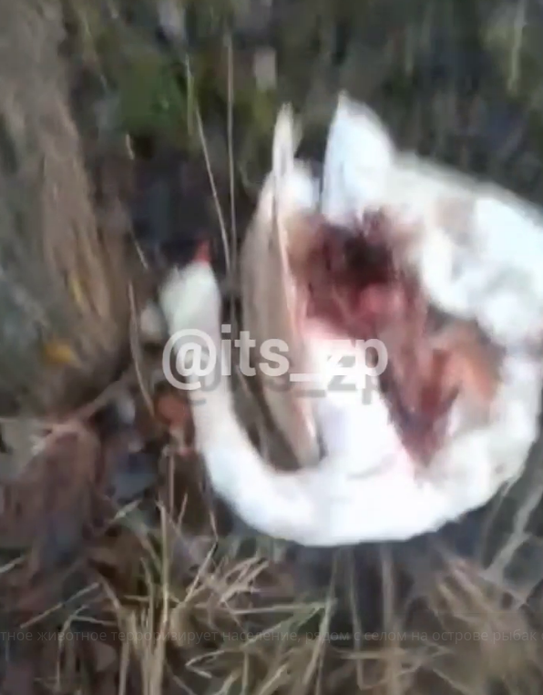 Так, один з місцевих рибалок натрапив на страшну знахідку: на острові чоловік виявив останки білого лебедя і "гірлянди", які були зроблені з нутрощів тварини.