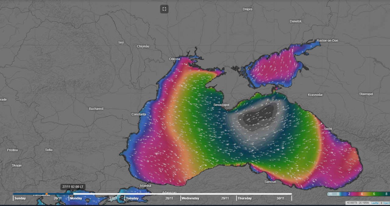 За словами аналітиків, у Криму відбудеться максимально можливий шторм із усіх можливих; раніше були зафіксовано найвищі показники хвиль до 8 метрів. За даними погодного ресурсу він вже наближається на південно-західної частини півострова, де вируватиме увечері 26 листопада і впродовж дня 27 листопада.