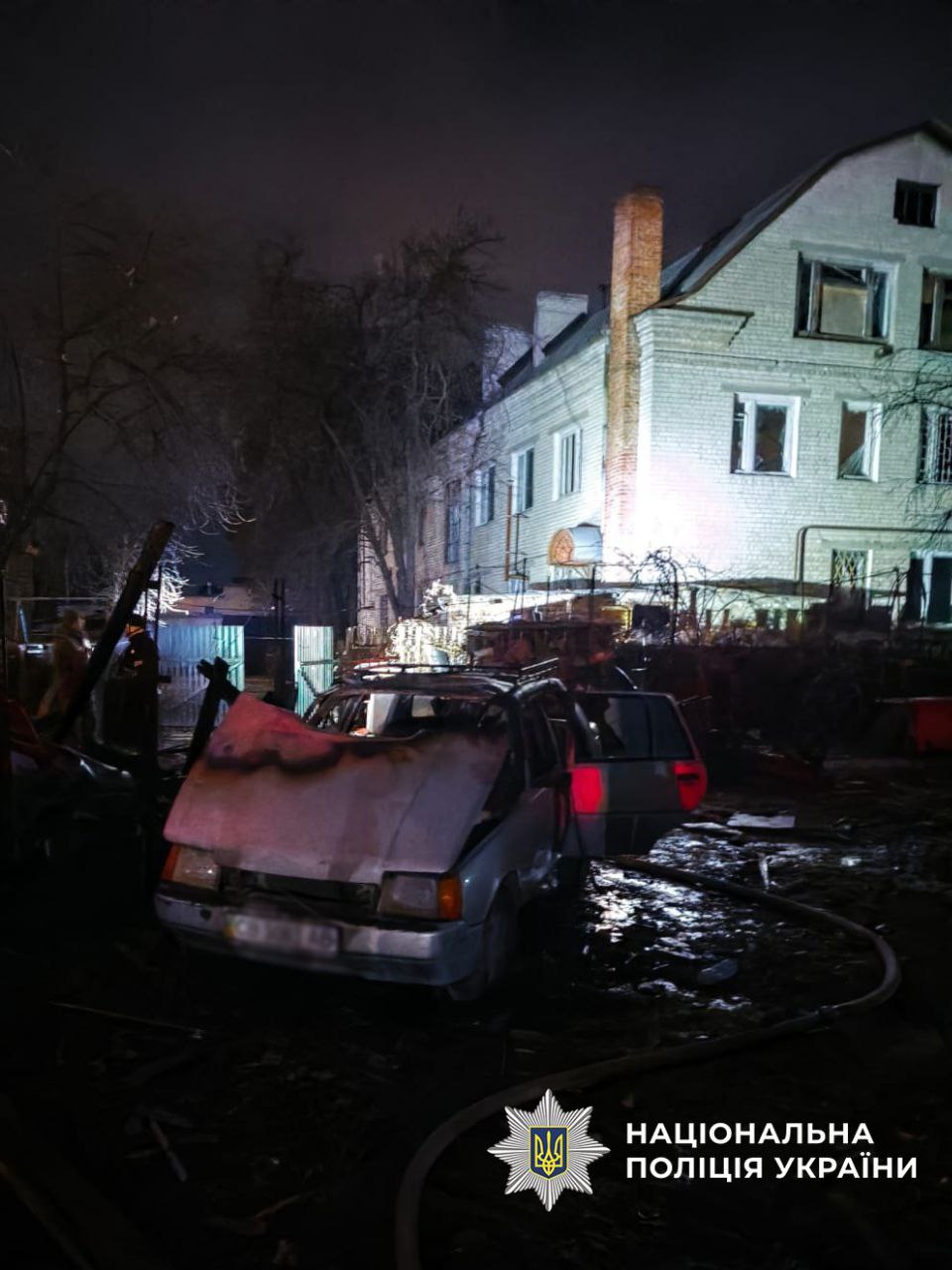 За даними правоохоронців, в одному з мікрорайонів через атаку загорілися господарча споруда та дві автівки. Пожежу ліквідували підрозділи ДСНС. Вибуховою хвилею пошкоджено вікна в довколишніх будинках та в освітньому закладі.