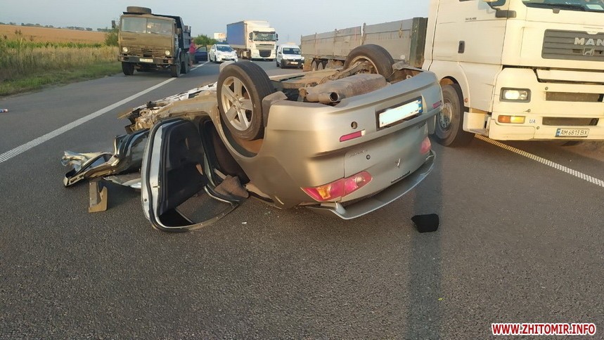 "За попередньою інформацією, Mitsubishi Lancer на великій швидкості скоїв зіткнення з КамАЗом, після чого у легковика відпало колесо і він перекинувся", - говорять в поліції.