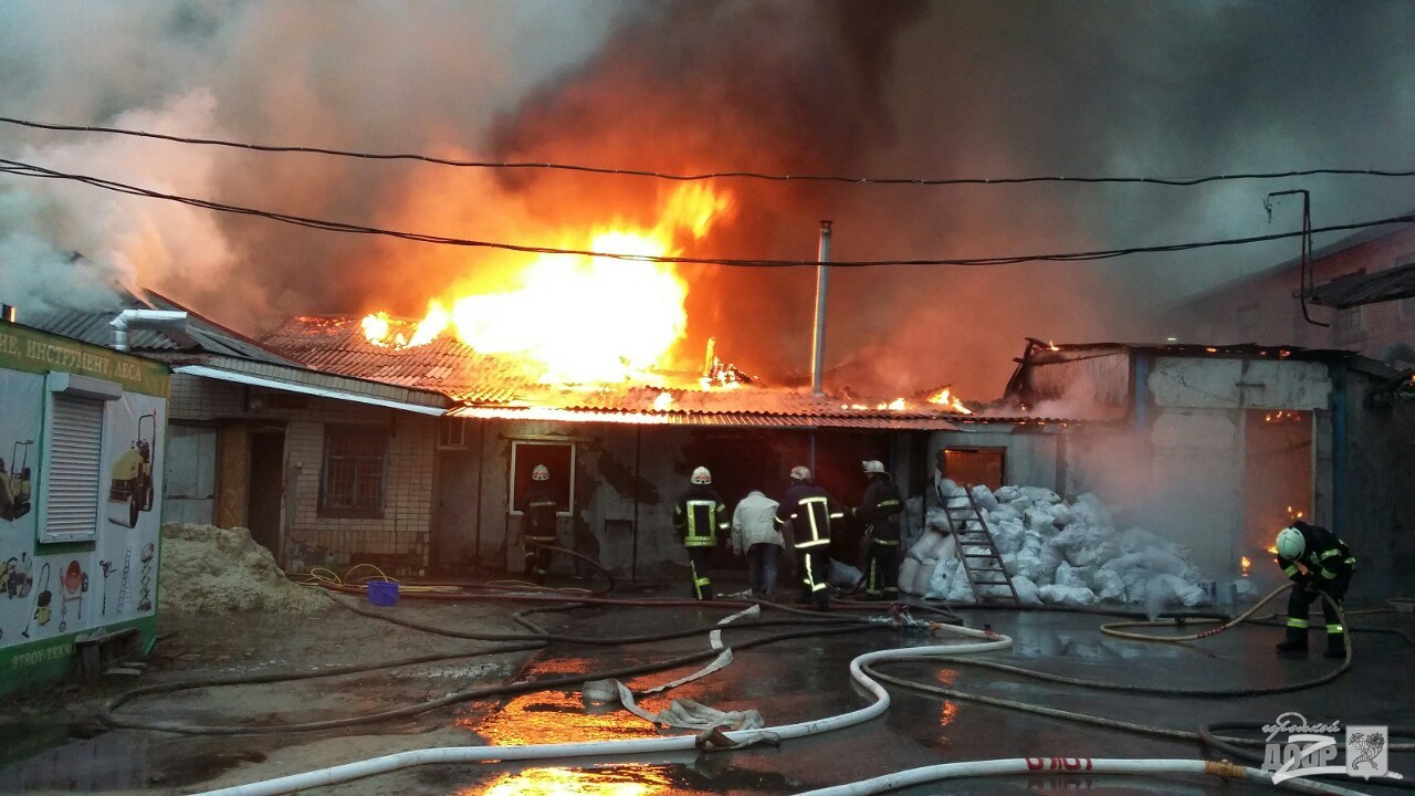 Станом на 15:45 пожежникам не вдалося локалізувати загоряння, площа пожежі розповсюджується по території складських приміщень.