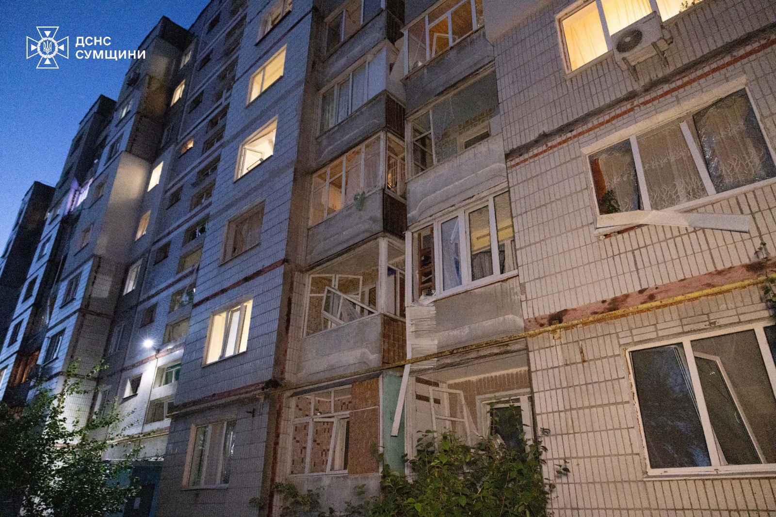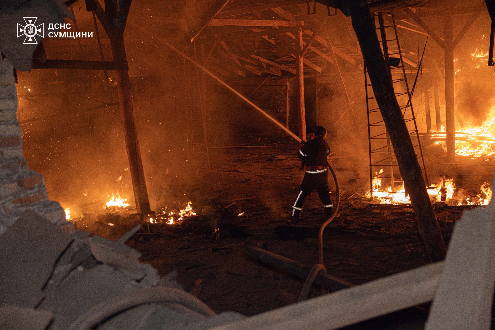 У ніч на 22 вересня російські війська завдали серії ударів по Сумах, внаслідок чого виникла пожежа на промисловому об'єкті, а також було пошкоджено навчальний заклад. Одна людина отримала травми.