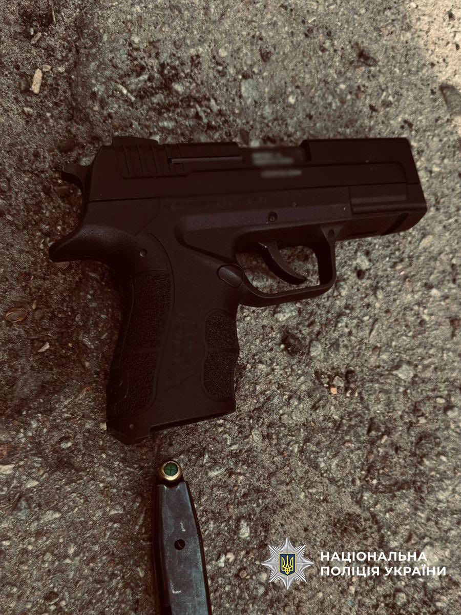 Правоохоронці встановили, що двоє чоловіків з ознаками алкогольного сп'яніння йшли вулицею і один із них кілька разів вистрілив у повітря зі стартового пістолета. За словами поліцейських, ніхто не постраждав.