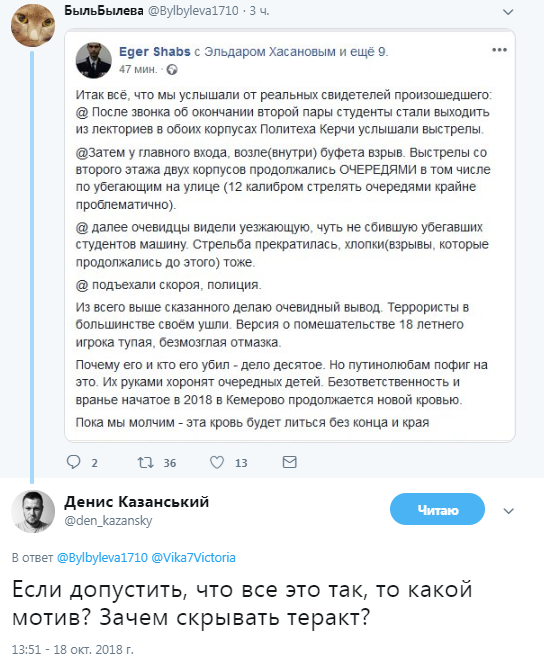 В мережі почали викривати "божевілля 18-річного студента керченського технікуму", який нібито один розстріляв студентів і викладачів, і здогадуватися про причетність руки Кремля до того, що сталося.