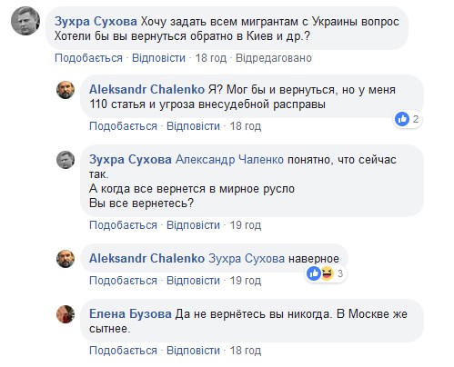 У свою чергу користувачі поцікавилися у Чаленко, хотів би він сам в майбутньому повернутися до Києва. Той відповів, що міг би і повернуться, але побоюється переслідування за статтею щодо посягання на територіальну цілісність України, а також "позасудової розправи". Разом з тим він не виключив повернення до Києва, коли "все повернеться в мирне русло".
