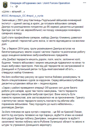 "Щоб стати професійним сапером, майору Дмитру Клименку довелося пройти довгий і тернистий шлях воїна, із честю відповідаючи на виклики долі.