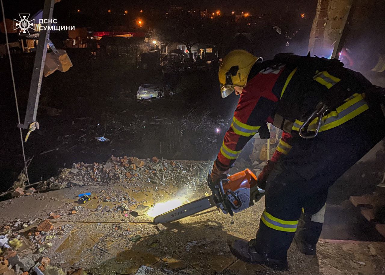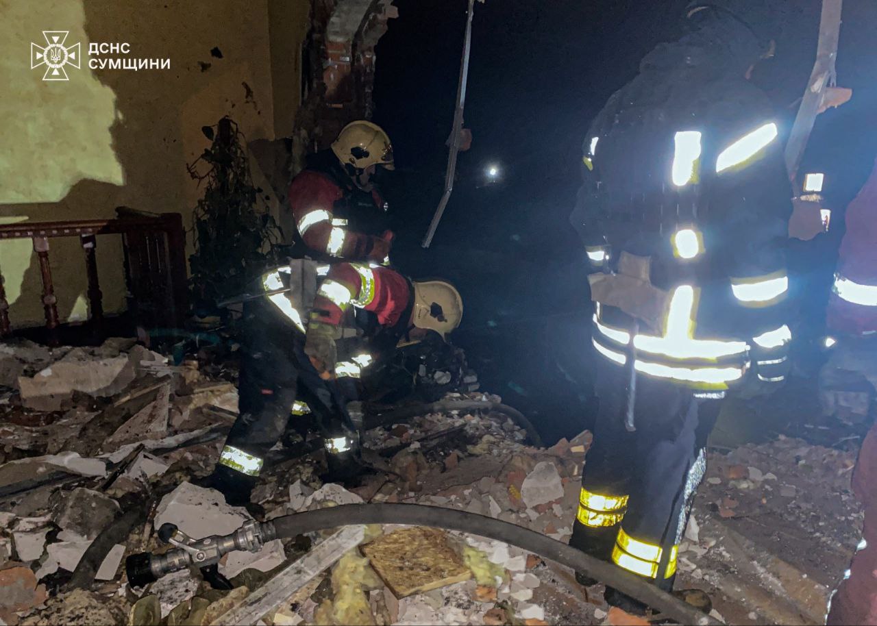 Рятувальники повідомили про часткове руйнування верхнього поверху двоповерхового приватного житлового будинку. Виникла пожежа, проте рятувальники ліквідували загоряння та обстежили територію по якій було нанесено удар.