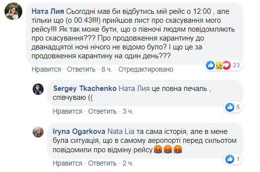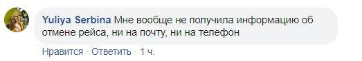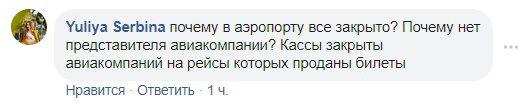"Мені взагалі не приходила інформація про скасування рейсу, ні на пошту, ні на телефон", "Чому в аеропорту все закрито? Чому немає представників авіакомпанії?" - пишуть незадоволені громадяни.