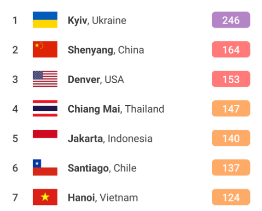 Увечері від 16 квітня Київ очолив рейтинг міст з найбільшим забрудненням атмосфери в світі з показником в 380 пунктів, при нормі 50.