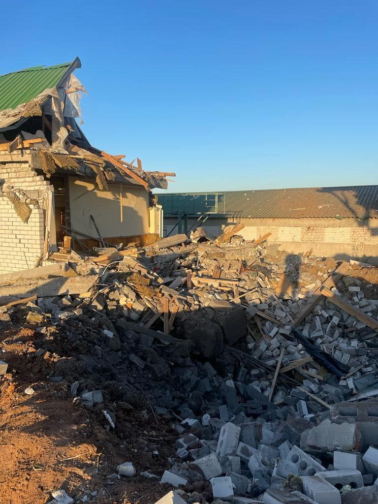 "Внаслідок удару керованою авіабомбою по с. Шийківка Ізюмського району пошкоджено лінії електропередач та газову трубу. Внаслідок удару імовірно касетними боєприпасами з РСЗВ "Ураган" по с. Загризлове Ізюмського району пошкоджено будинок. Триває розмінування. Піротехніки ДСНС за добу обстежили понад 8 га території та знешкодили 59 вибухонебезпечних предметів", - розповів Синегубов.