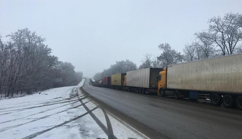 На українському пункті пропуску "Гоптівка" виникла пробка з сотні вантажівок, через відмову прийому з російської сторони.